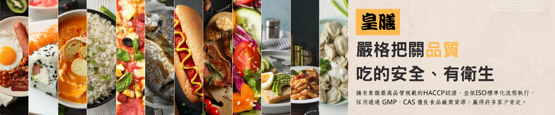 【皇膳】餐飲有限公司秉持「健康、美味、專業、安全」的理念,致力提供高品質團膳服務,我們相信,好的餐食不只滿足味蕾,更是守護健康的重要基石。